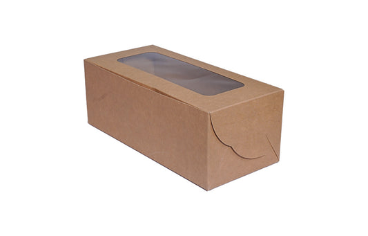 500 gm Plum Cake L8.75xW4xH3.25 Box with Window Kraft Paper Brown