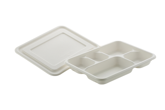 5 Compartment Cornstarch Meal Tray Biodegradable with lid
